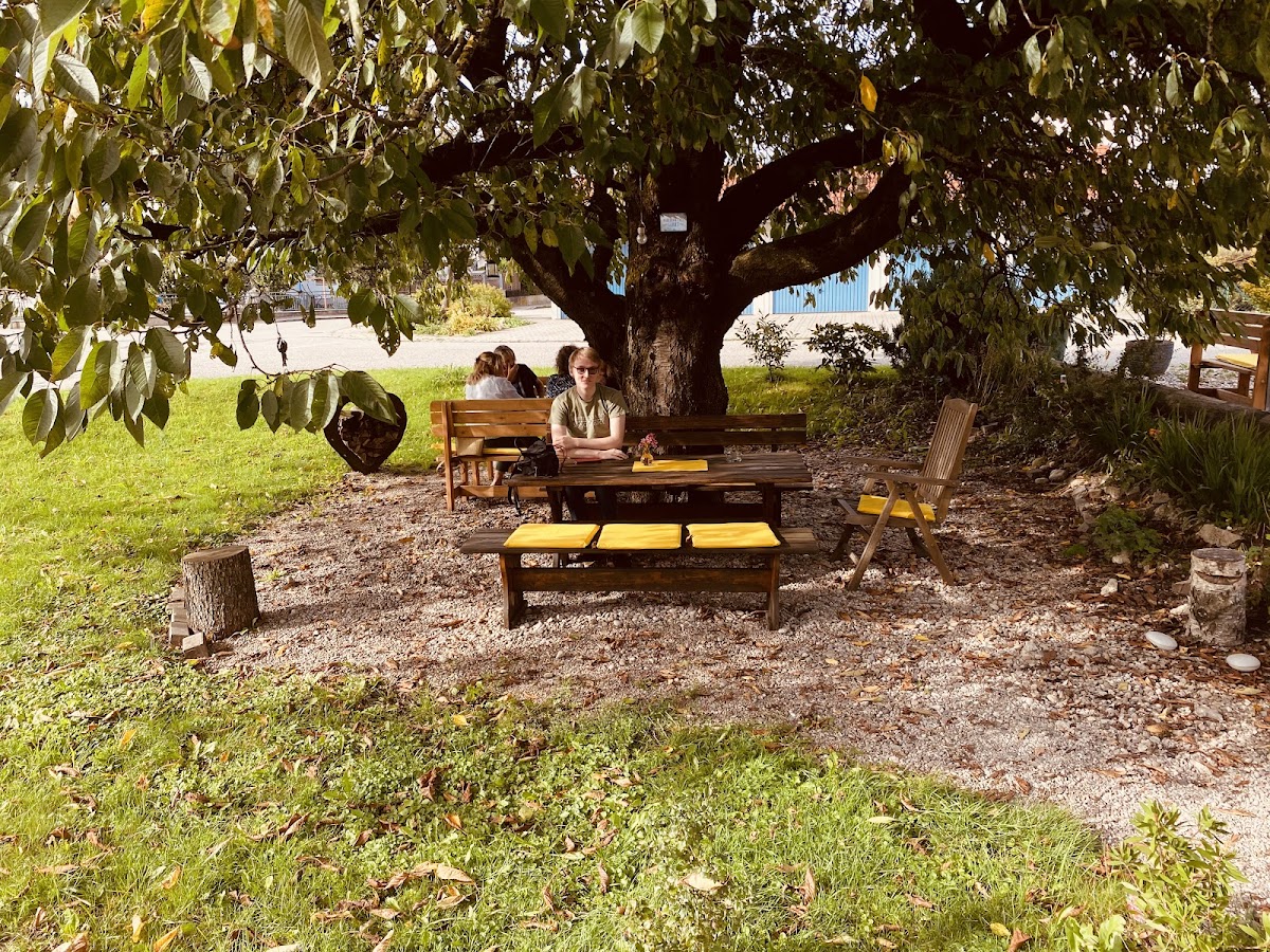 Guests often appreciate the friendly and attentive service — from the cheerful owner to the welcoming staff — which contributes to a genuine village atmosphere rather than a polished or overly commercial feel. Seating extends outdoors under a large walnut tree, a nice spot especially on mild weather days, which lets visitors soak in the rural surroundings while sipping an Apfelschorle or a favored coffee blend.